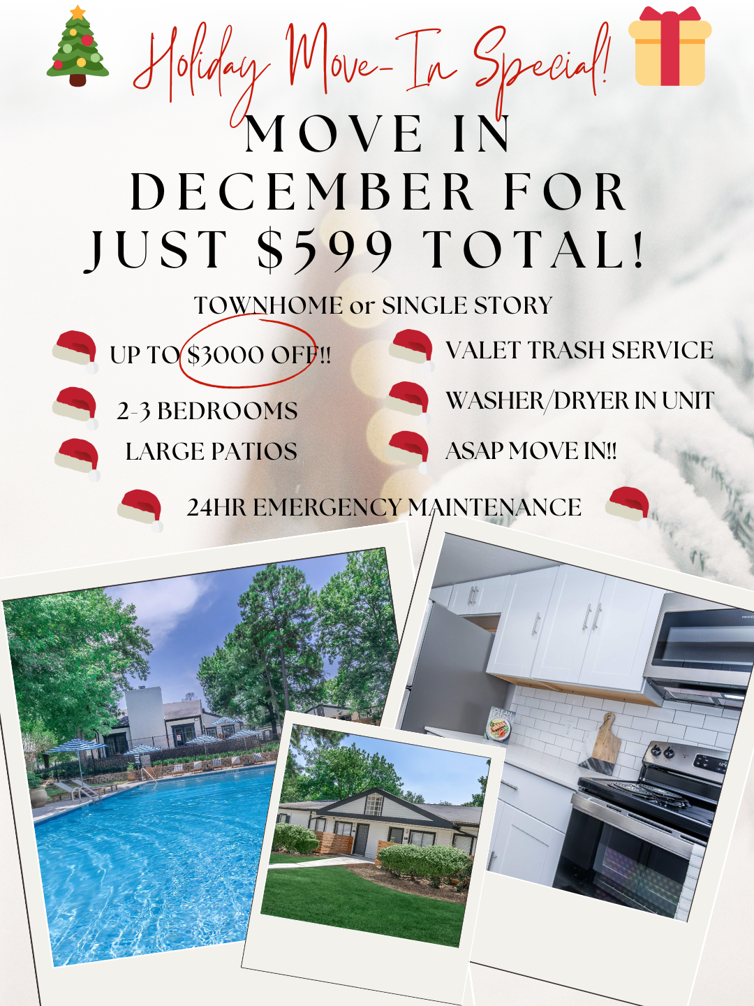 🎄$599 Total Move In and Up To $3000 Off! 🎁